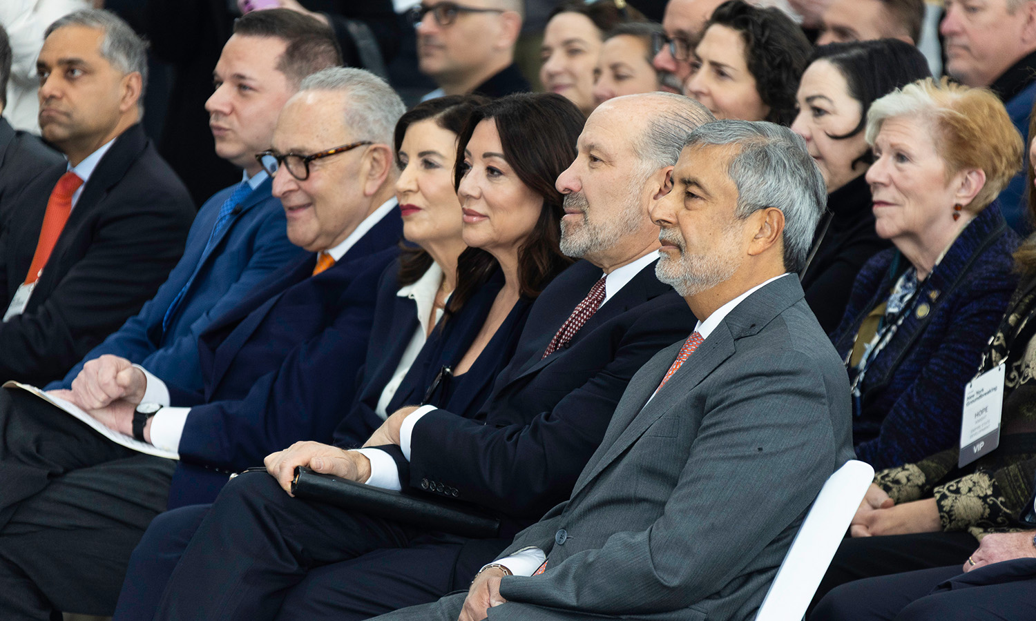 Micron executives joined by Commerce Secretary Howard Lutnick, Labor Secretary Lori Chavez-DeRemer, Governor Kathy Hochul, Senator Charles Schumer, County Executive Ryan McMahon, Members of Congress and other distinguished guests.